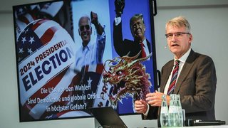 Beim Strategieforum Außenwirtschaft in Neuss referierte Elmar Theveßen zum Thema „Die USA vor den Wahlen: Sind Demokratie und globale Ordnung in Gefahr?“